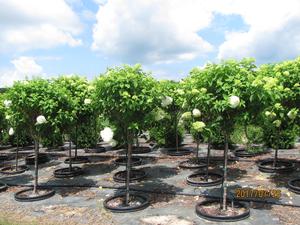- Tree form. Proven Winners, green flowers change to white then red/ pink