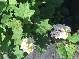 An oakleaf hysrangea with large panicles of white flowers on sturdy stems.