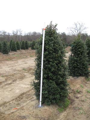Narrow pyramidal to columnar growth habit. Widely considered one of the best narrow-growing hollies. Good large red fruit set is typical.