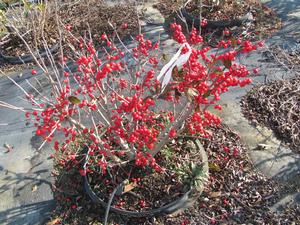 Multi-stemmed native with profuse red berries. Attractive to birds. Upright, spreading habit. i.v. 'Southern Gentleman', male pollinator, also available. Gold Medal Plant Award, PA.