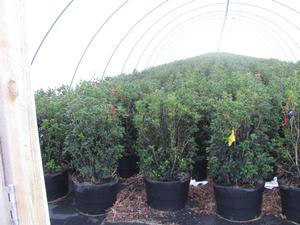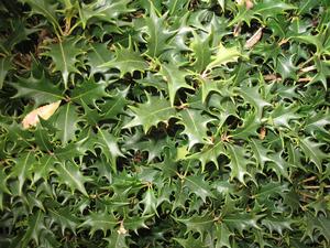 Glossy, spiny leves. Excellent for hedging. Compact growth. Cultivar is hardier than the species.